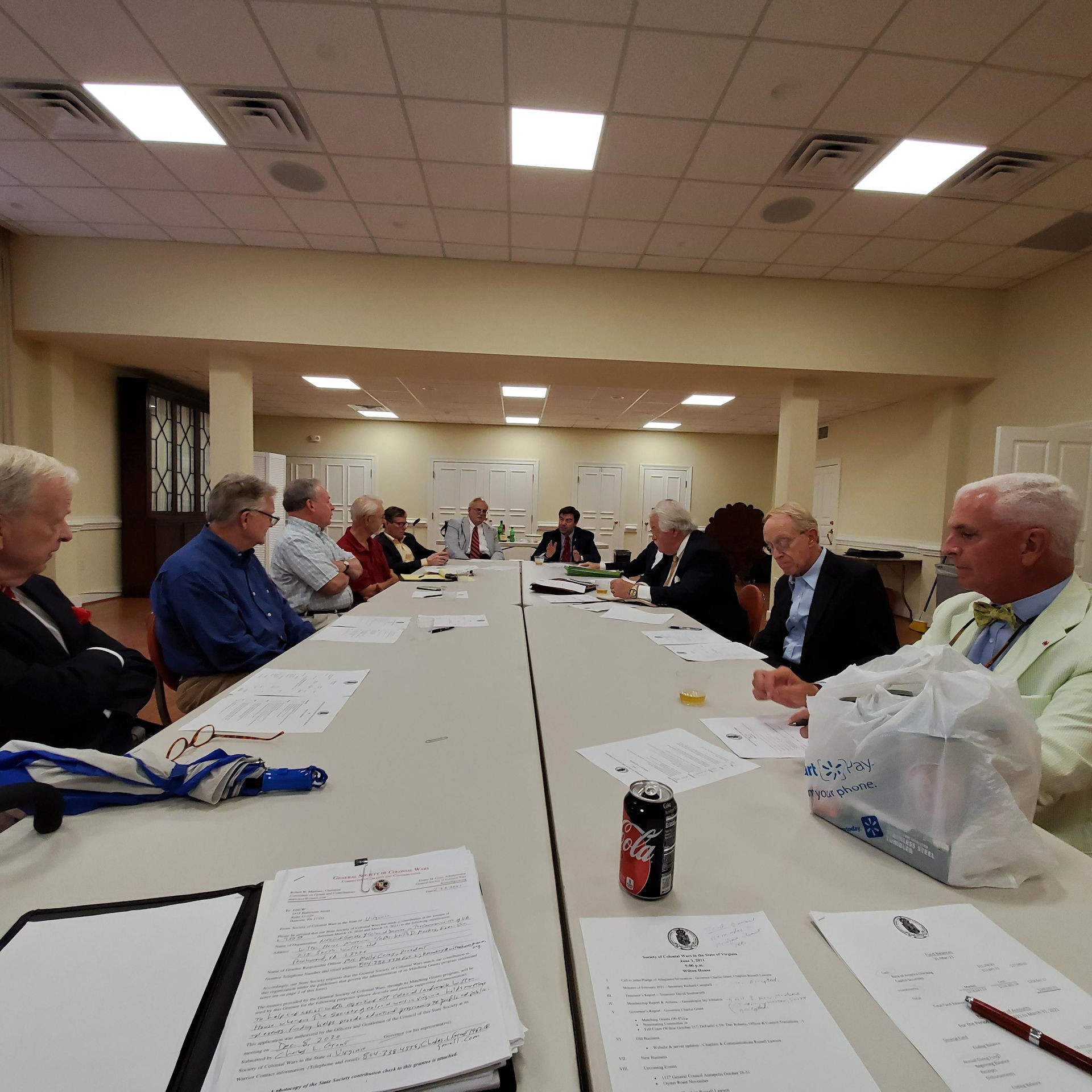 After a year of postponements, cancellations and virtual meetings, your Council was able to meet in person on June 3 at Wilton House to enact business of the Society. Here are a few pictures of your representatives and officers. Attending were: Charles Grant, Governor; Ed Mitchell, Deputy Governor; Doug Rucker, Chancellor; Russell Lawson, Chaplain; Jay Johnston, Genealogist & Registrar; Taylor Cowardin, Deputy Governor General; and members of Council Tom Vance, George Calvert, Jim Russell, Peter Broadbent, Ben Emerson and Alan Noel.